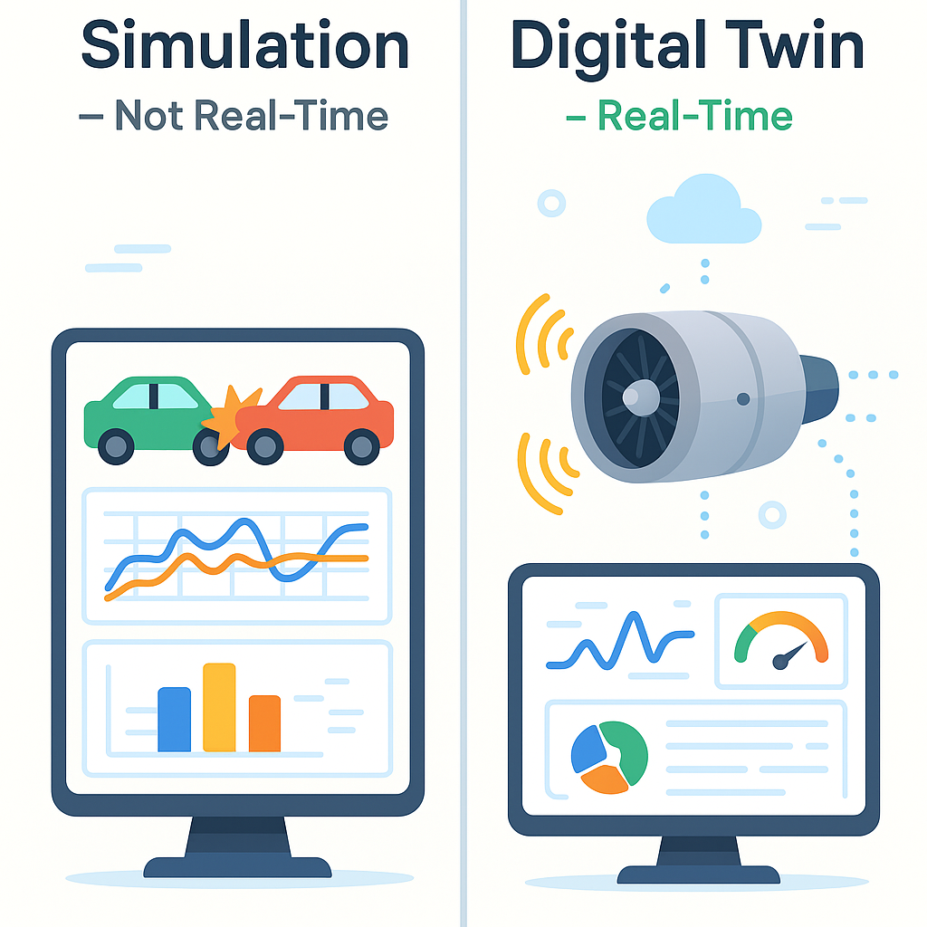 بله. گرچه دوقلوی دیجیتال میتواند قابلیت شبیهسازی داشته باشد، ارزش اصلی آن در بازتاب بلادرنگ دنیای واقعی است و شبیهسازی یک امکان افزوده است، نه ضرورت.